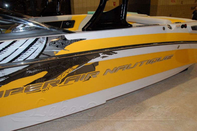 Styling showing a combination of raised letters, vinyl decals and gelcoat colortones. - By: Bruce Pate (Lakes Online)